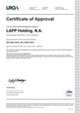 ISO 9001, 14001 certification, LAPP Holding, N.A.